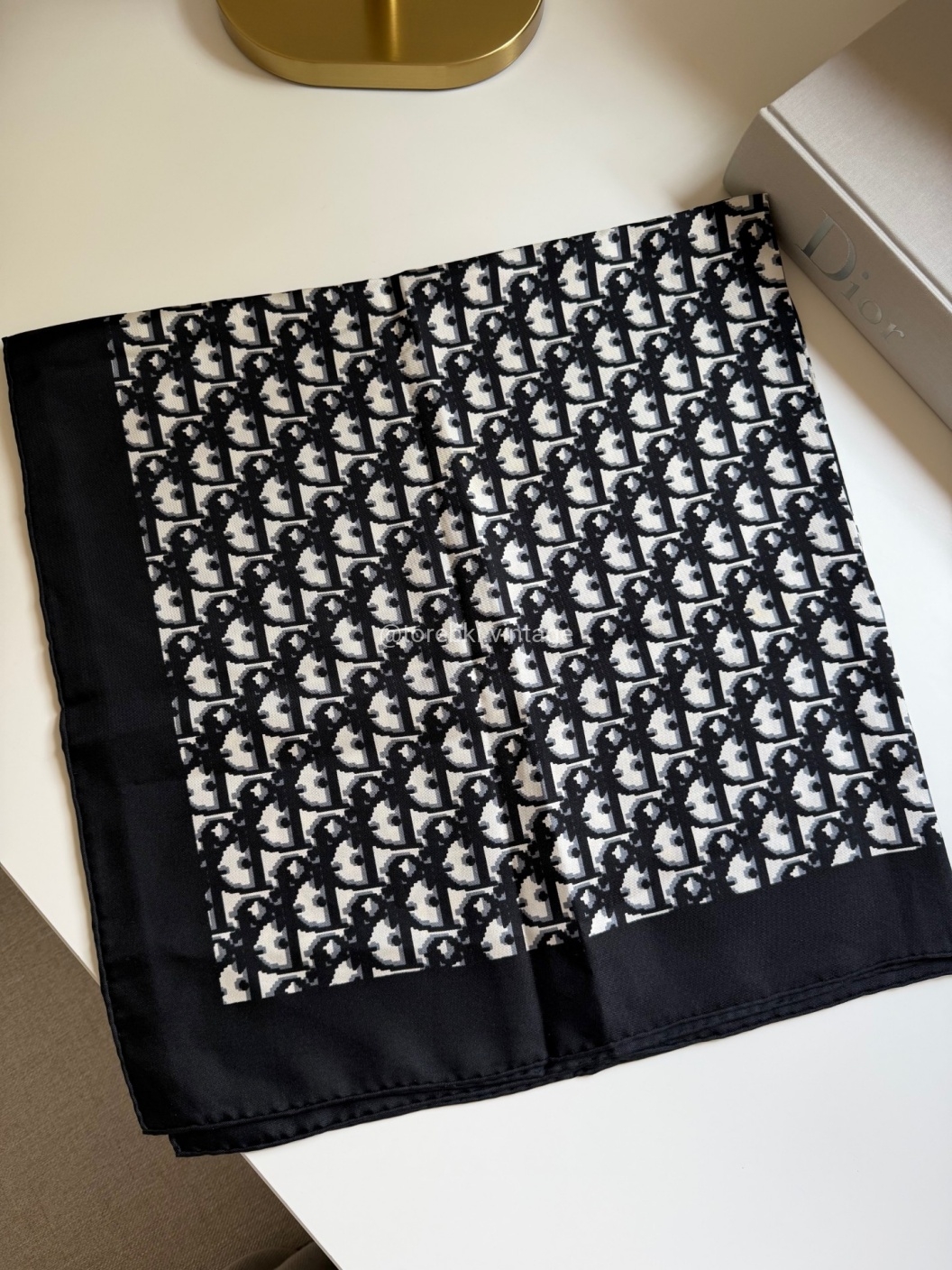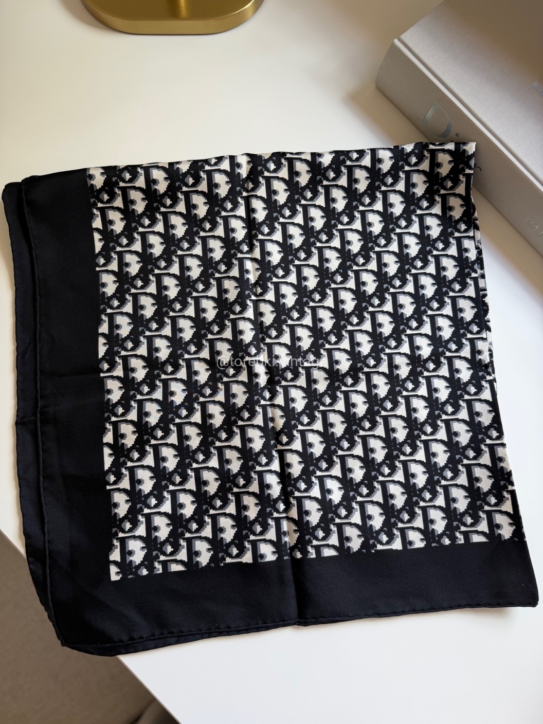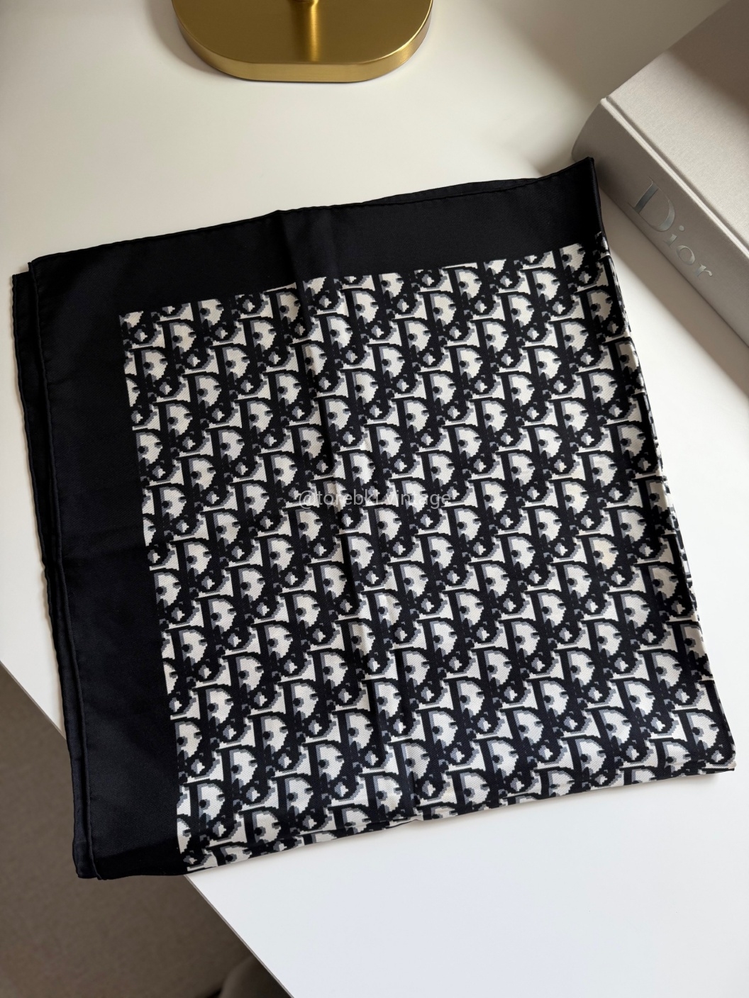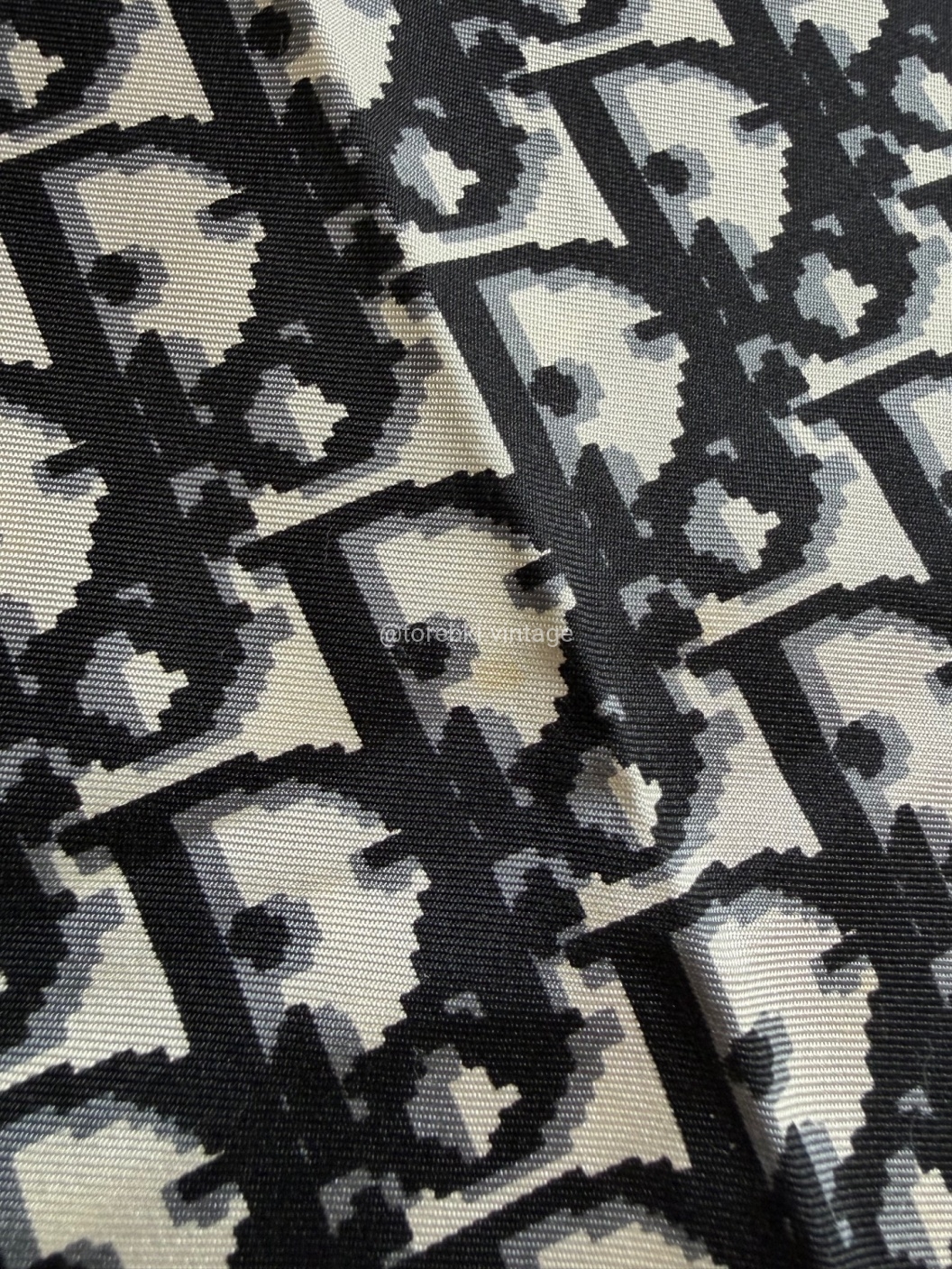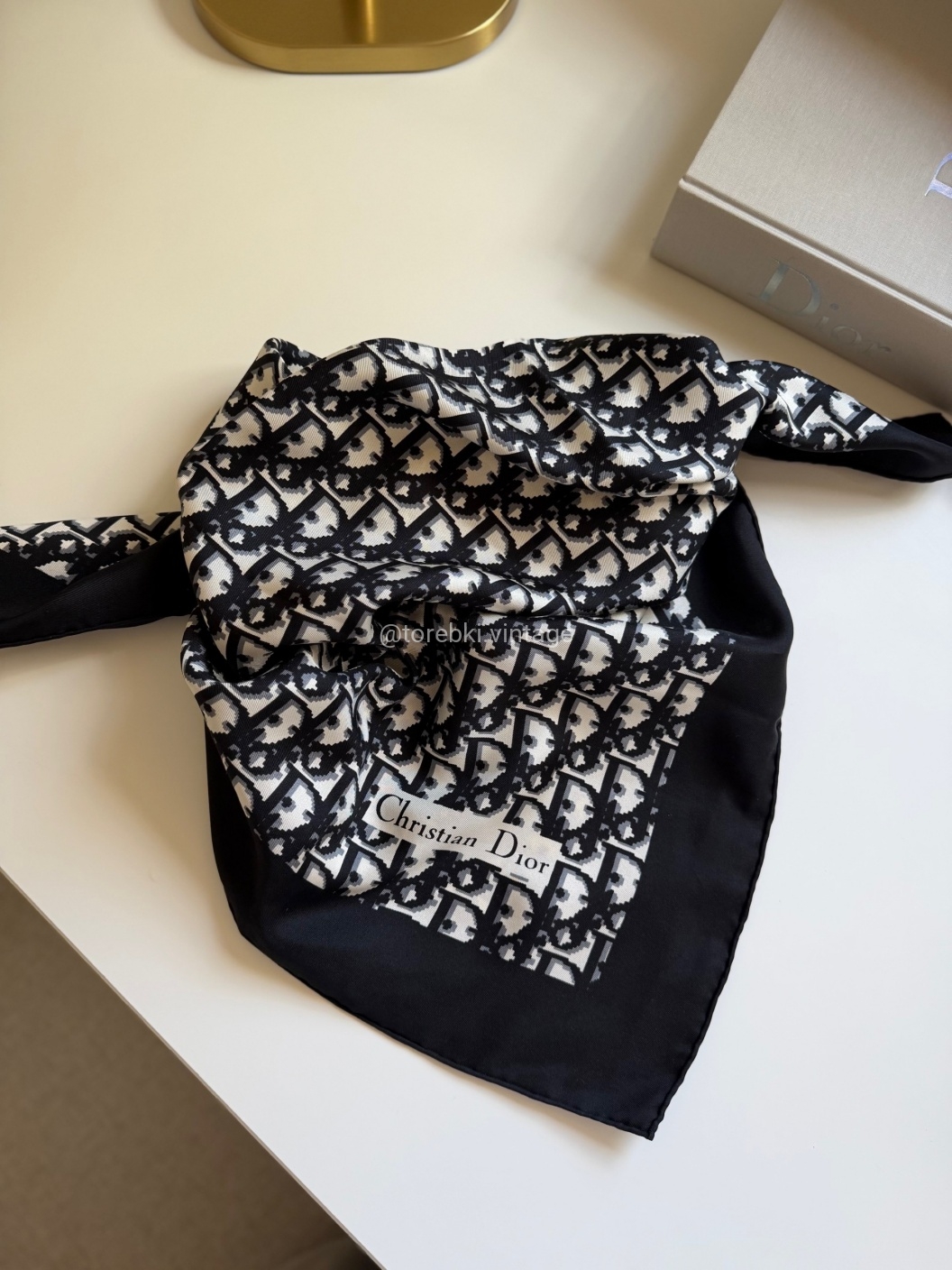 Jedwabna jednostronna apaszka vintage Christiana Diora w eleganckiej i ponadczasowej intensywnej, wyrazistej, czarno-biało-szarej kolorystyce. Wykonana została w 100% z jedwabiu. Dość duży format, który daje wiele możliwości stylizacji. Metki z logo i ze składem prawdopodobnie zostały odcięte i zaginęły. Widoczne 2 mini plamki (bardzo znikome), brak zaciągnięć. Generalnie jak na egzemplarz vintage jest to mimo wszystko rewelacyjnie zachowana apaszka.