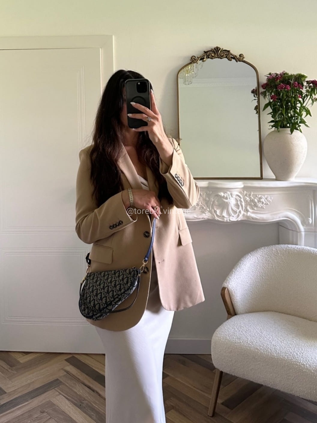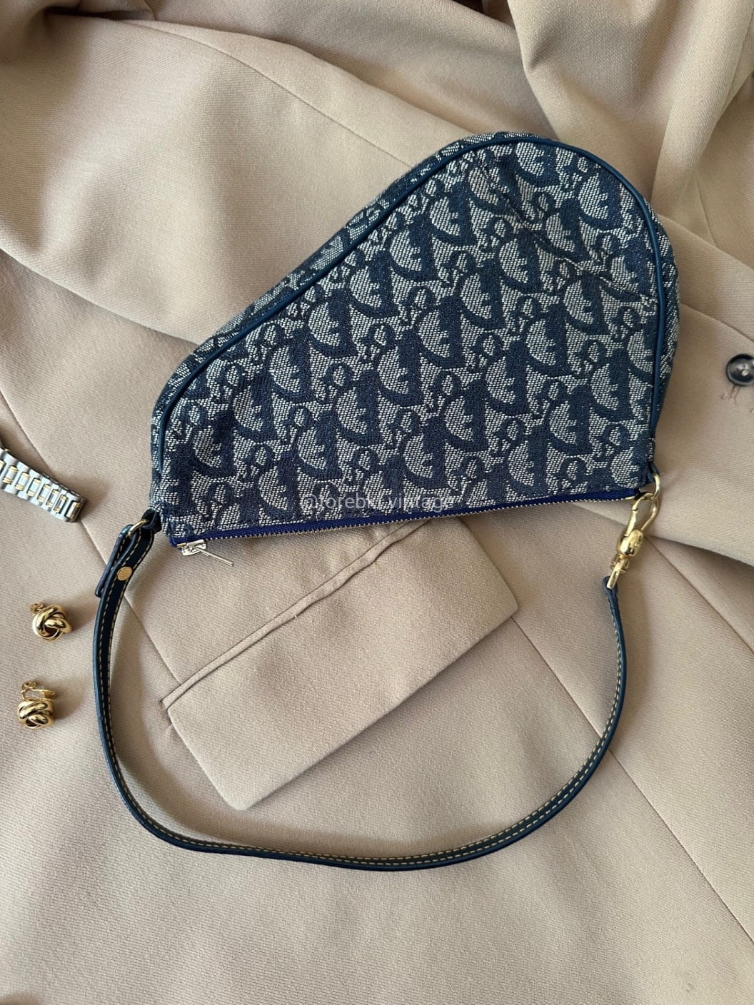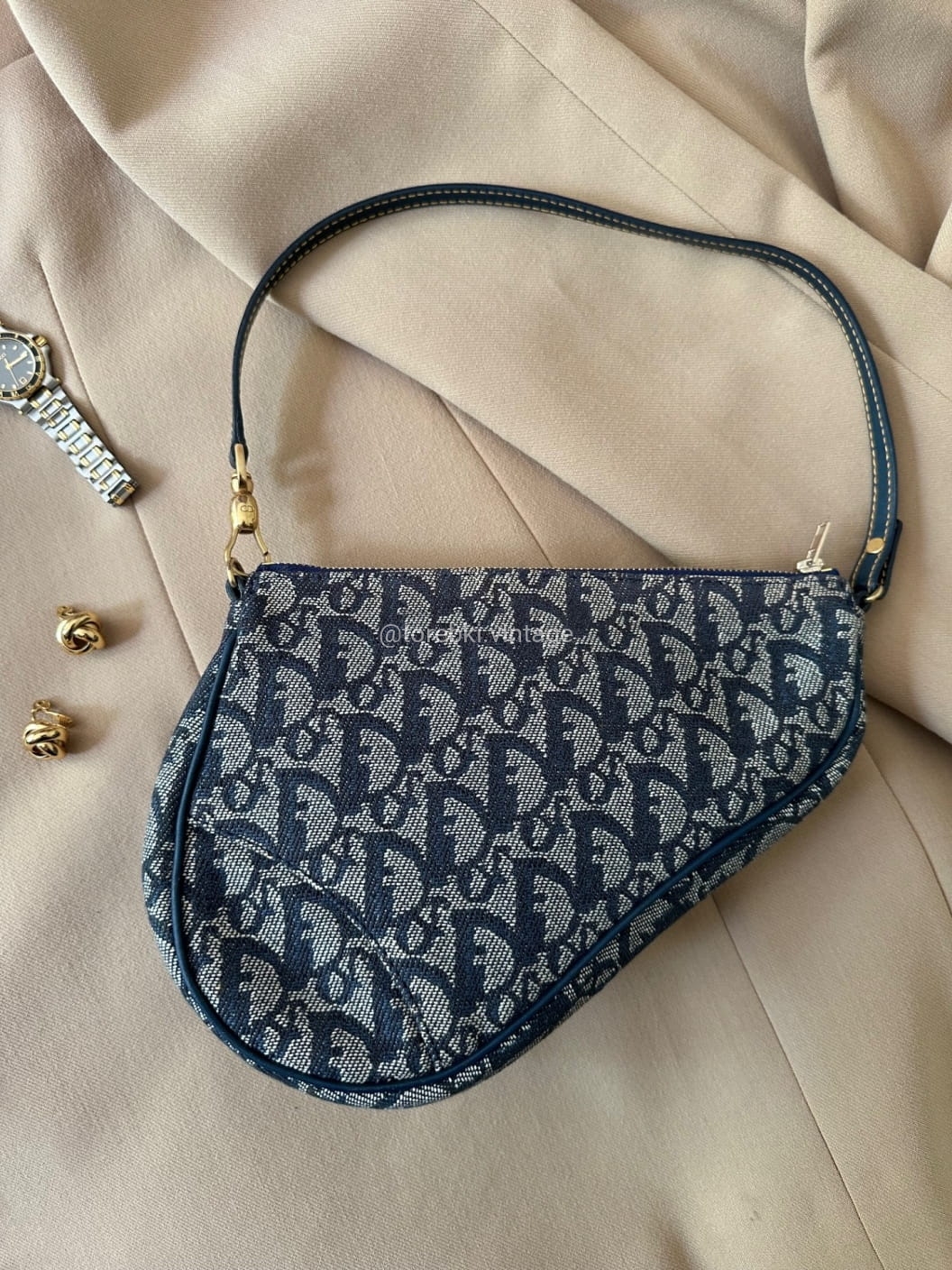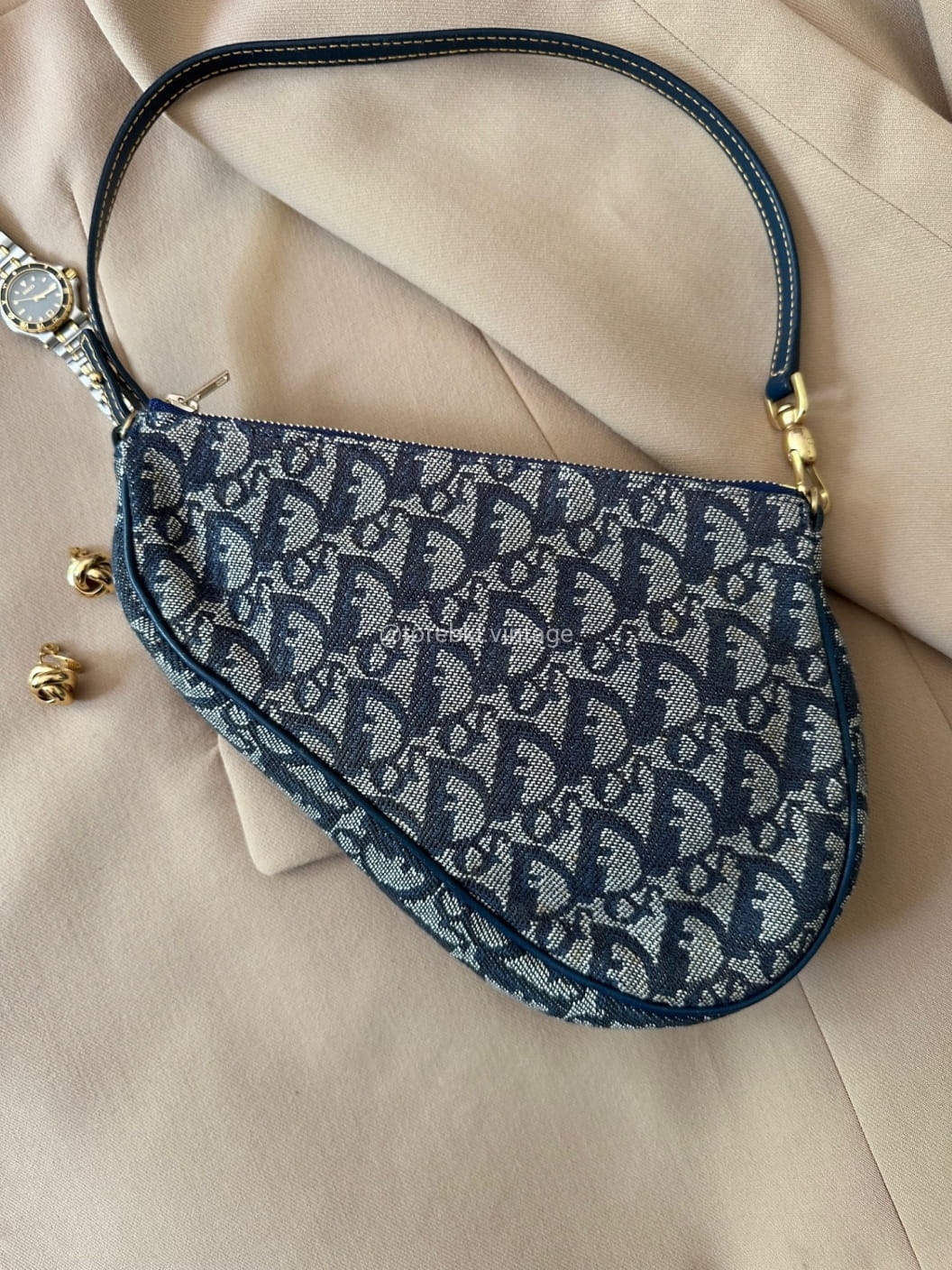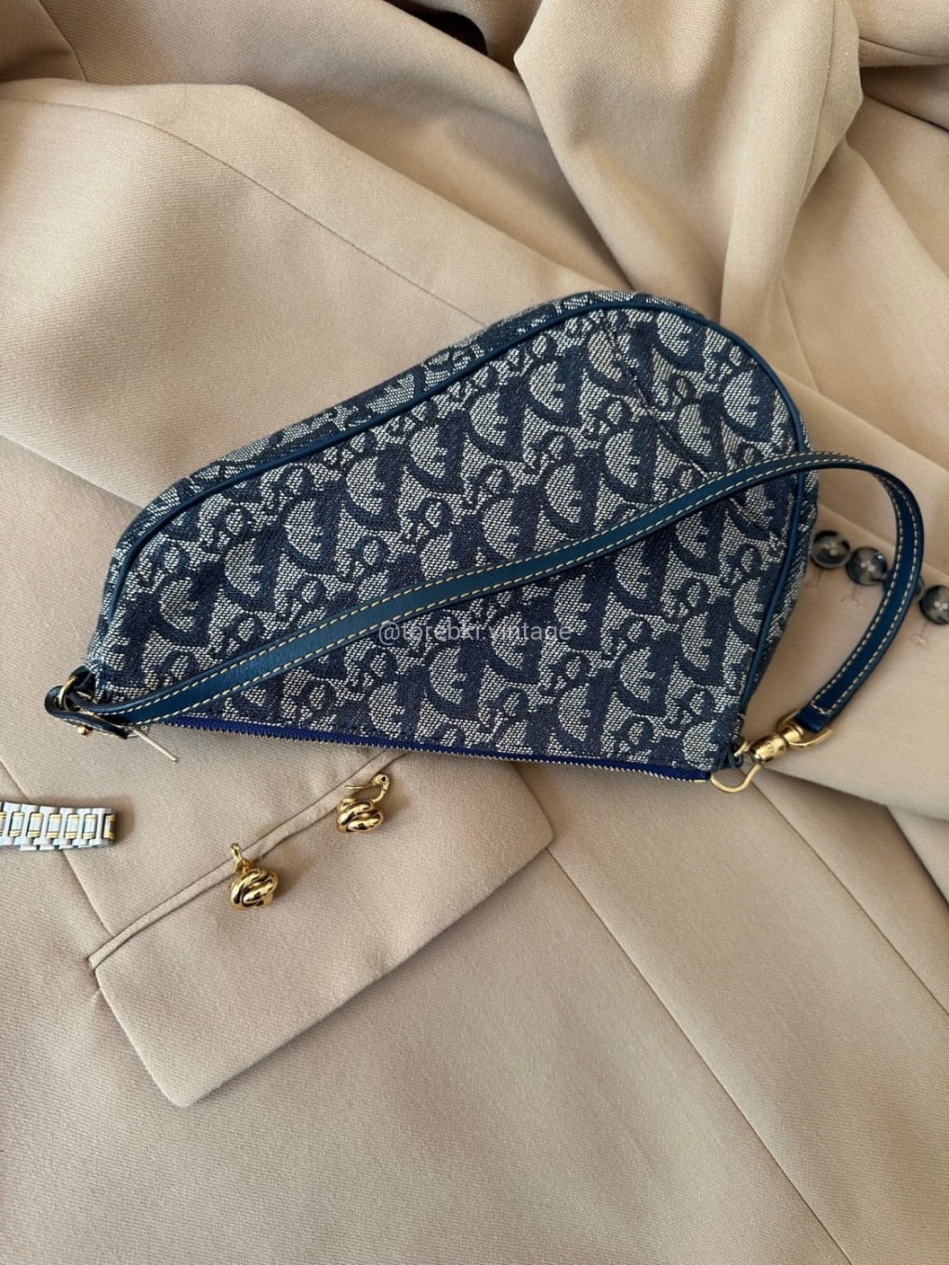 Piękna torebka Dior o niezwykle charakterystycznym kształcie siodła w ciemnogranatowo-niebieskiej kolorystyce. Wykonana została z niezwykle wytrzymałego materiału i skóry naturalnej. Zachowana została w bardzo dobrym stanie. Piękne logowania na materiale. W kilki miejscach widoczne mini plamki/przebarwienia ale nawet na zdjęciach ciężko je wychwycić, są tak niewielkie.
