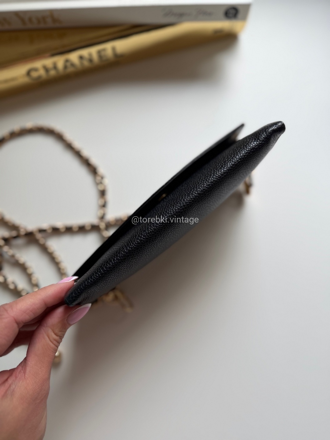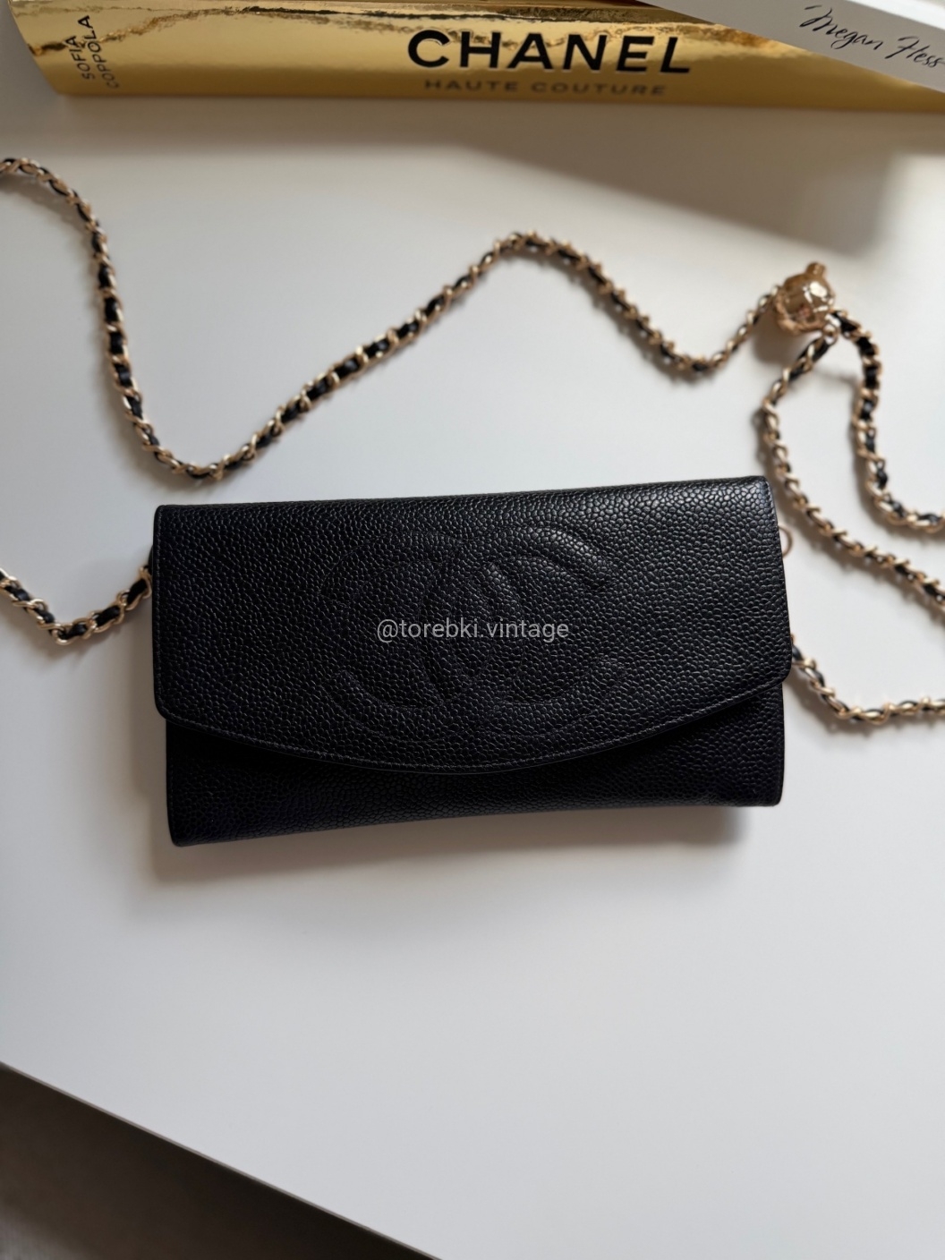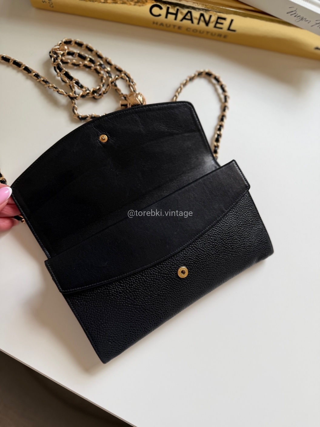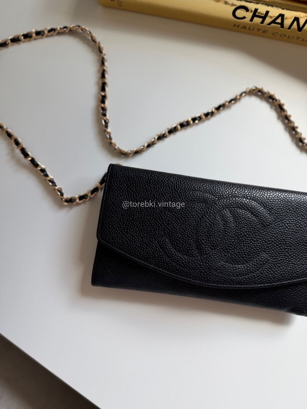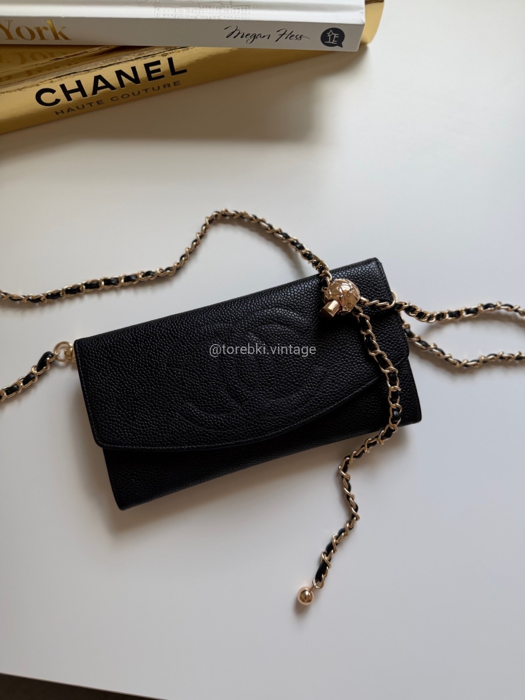 Łańcuszek można regulować kulką. Maksymalna długość łańcuszka to 130 cm (długość mierzona wraz z karabińczykami). Torebkę można nosić komfortowo jako crossbody. Ważna informacja - łańcuszek jest tylko i wyłącznie stylizowany na Chanel, nie jest to produkt marki. Jest dodany do portfela tak by można było korzystać z niego w formie torebki.